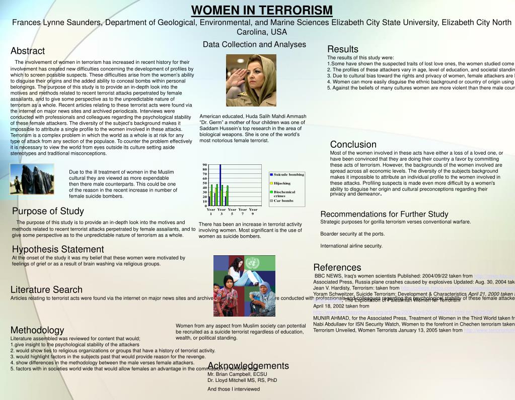 WOMEN IN TERRORISM Frances Lynne Saunders, Department of Geological, Environmental, and Marine Sciences Elizabeth City State University, Elizabeth City North Carolina, USA. Data Collection and Analyses. Results The results of this study were: