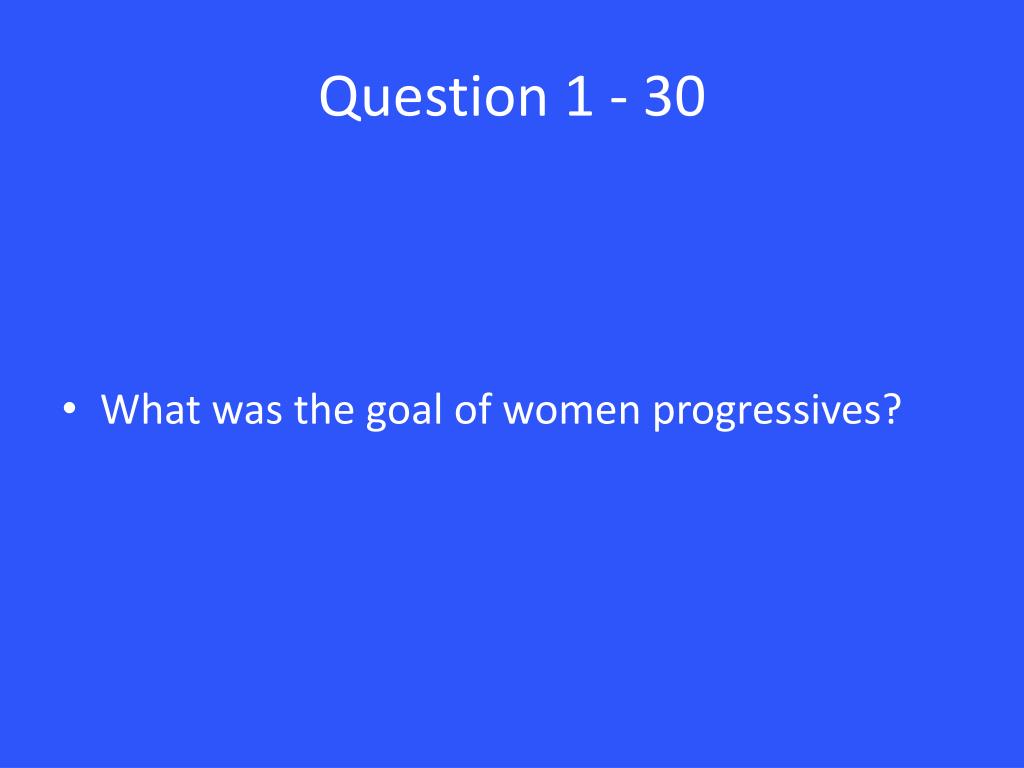 Answer 3 – 30 • They were social reformers. • Jane Adams (Hull House) • Lillian Wald (nurse) • Jacob Riis (pictures of slums)