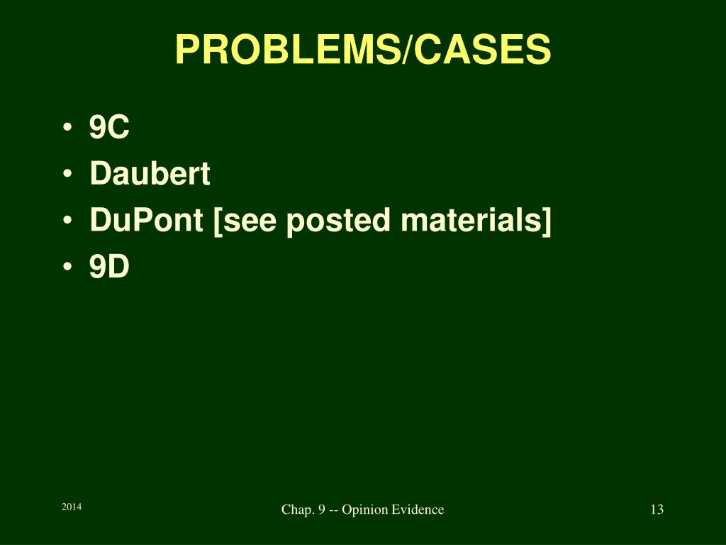 PROBLEMS/CASES • 9C • Daubert • DuPont [see posted materials] • 9D Chap. 9 -- Opinion Evidence