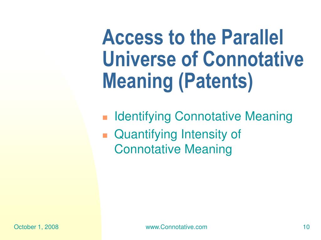 Access to the Parallel Universe of Connotative Meaning (Patents) • Identifying Connotative Meaning www.Connotative.com