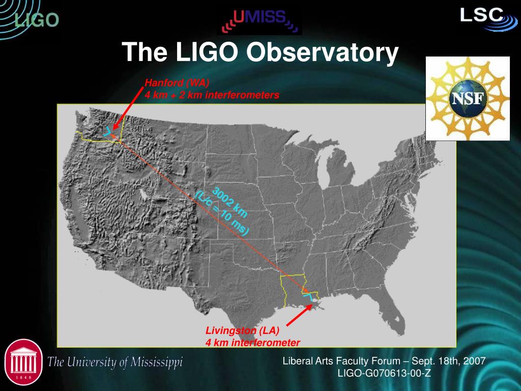 University of Michigan • University of Minnesota • The University of Mississippi • Massachusetts Inst. of Technology • Monash University • Montana State University • Moscow State University National Astronomical Observatory of Japan • Northwestern University • University of Oregon • Pennsylvania State University • Rochester Inst. of Technology • Rutherford Appleton Lab • University of Rochester • San Jose State University • Univ. of Sannio at Benevento, and Univ. of Salerno • University of Sheffield • University of Southampton • Southeastern Louisiana Univ. • Southern Univ. and A&M College • Stanford University • University of Strathclyde • Syracuse University • Univ. of Texas at Austin • Univ. of Texas at Brownsville • Trinity University • Universitat de les Illes Balears • Univ. of Massachusetts Amherst • University of Western Australia • Univ. of Wisconsin-Milwaukee • Washington State University • University of Washington Australian Consortium for Interferometric Gravitational Astronomy The Univ. of Adelaide Andrews University The Australian National Univ. The University of Birmingham California Inst. of Technology Cardiff University Carleton College Charles Stuart Univ. Columbia University Embry Riddle Aeronautical Univ. Eötvös Loránd University University of Florida German/British Collaboration for the Detection of Gravitational Waves University of Glasgow Goddard Space Flight Center Leibniz Universität Hannover Hobart & William Smith Colleges Inst. of Applied Physics of the Russian Academy of Sciences Polish Academy of Sciences India Inter-University Centre for Astronomy and Astrophysics Louisiana State University Louisiana Tech University Loyola University New Orleans University of Maryland Max Planck Inst. for Gravitational Physics Liberal Arts Faculty Forum – Sept. 18th, 2007LIGO-G070613-00-Z