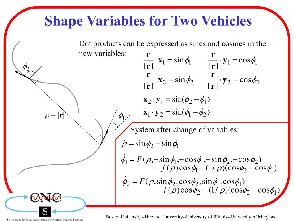 Shape Variables for Two Vehicles Dot products can be expressed as sines and cosines in the new variables: 2 = |r| 1 System after change of variables: