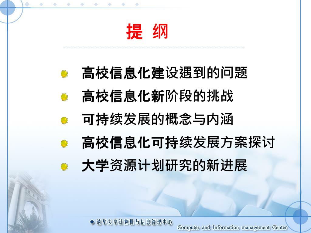高校信息化可持续发展研究 清华大学计算机与信息管理中心 蒋东兴 jdx@cic.tsinghua.edu.cn http://www.cic.tsinghua.edu.cn/ 二○○六年五月