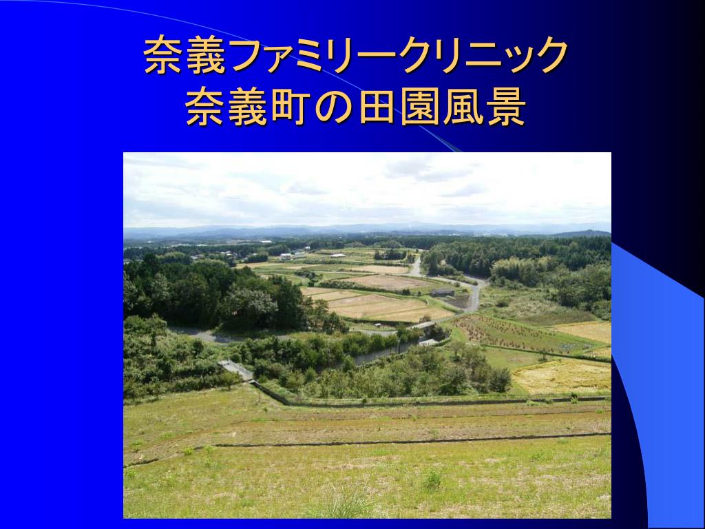 奈義ファミリークリニック における家庭医療後期研修 10年間のあゆみ(施設紹介). 奈義ファミリークリニック 松下 明. 背景1. 平成7年に岡山県北東部の奈義町・ 医療法人清風会(日本原病院)・川崎 医大総合診療部の3者合意によって 奈義ファミリークリニックは開設された。. 背景2. 当時、無医地区の危機にあった奈義町 は施設建設を手がけ、医師獲得に奔走し ていた医療法人清風会は経営を担当。 家庭医療のモデルクリニック創設を念 願していた川崎医大総合診療部は所長・ 後期研修医を派遣し、家庭医療の実践・