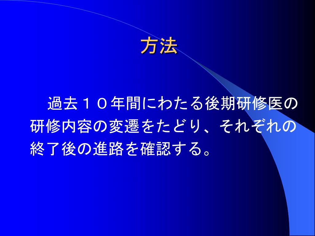 方法 過去10年間にわたる後期研修医の 研修内容の変遷をたどり、それぞれの 終了後の進路を確認する。