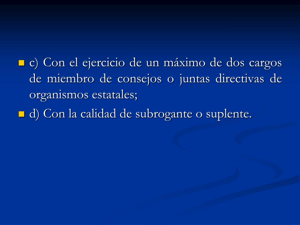 c) Con el ejercicio de un máximo de dos cargos de miembro de consejos o juntas directivas de organismos estatales; • d) Con la calidad de subrogante o suplente.