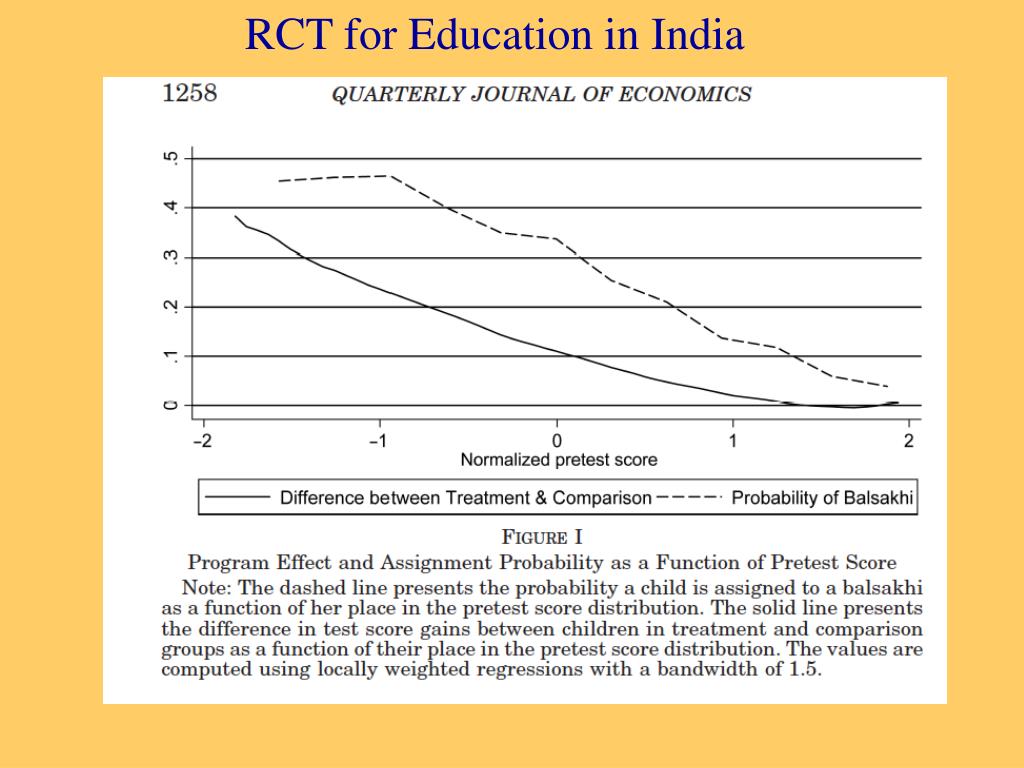 RCT for Education in India Source: Banerjee, et al. (2007), Quarterly Journal of Economics