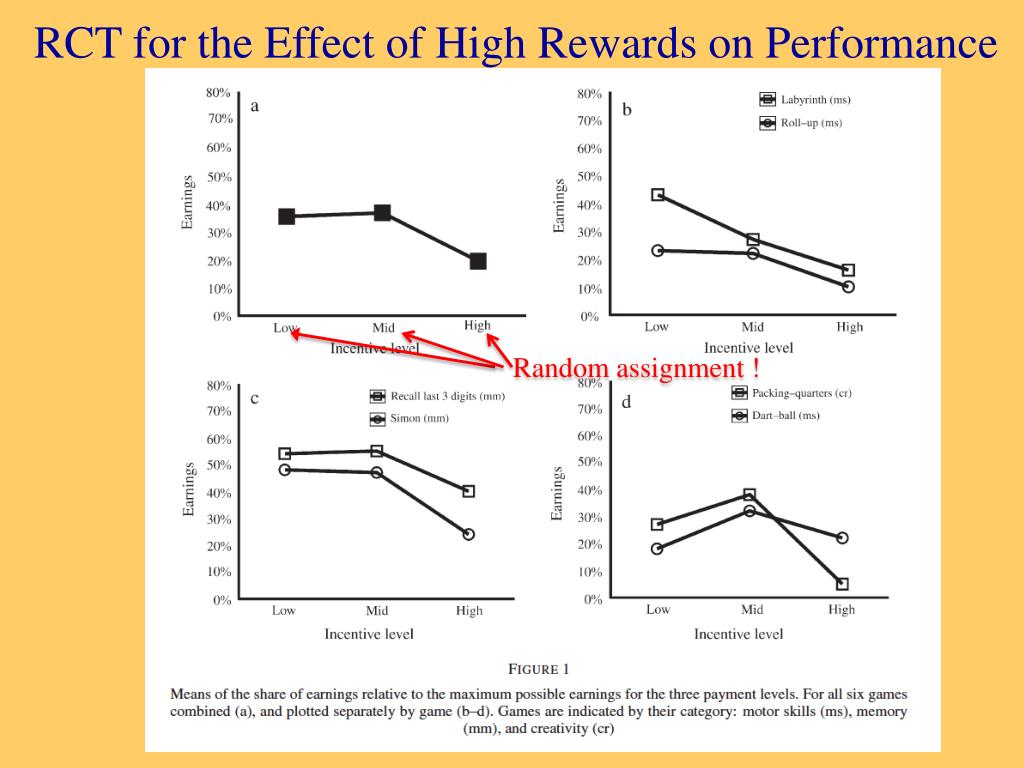 RCT for the Effect of High Rewards on Performance Random assignment !