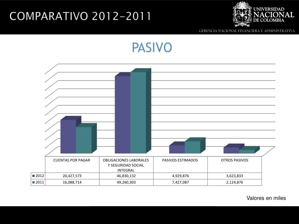 PASIVO COMPARATIVO 2012-2011 Valores en miles
