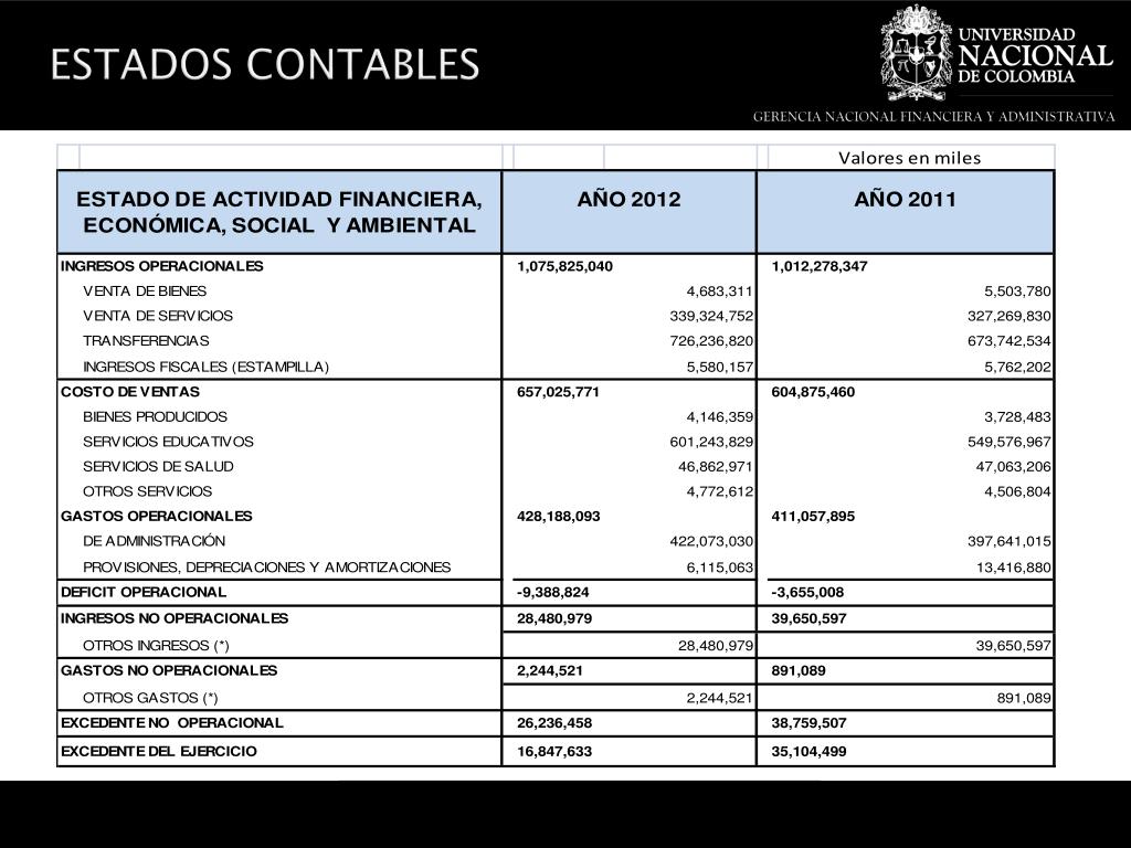 ESTADO DE ACTIVIDAD FINANCIERA, ECONOMICA Y SOCIAL (PyG) ESTADOS FINANCIEROS 2012 Valores en miles