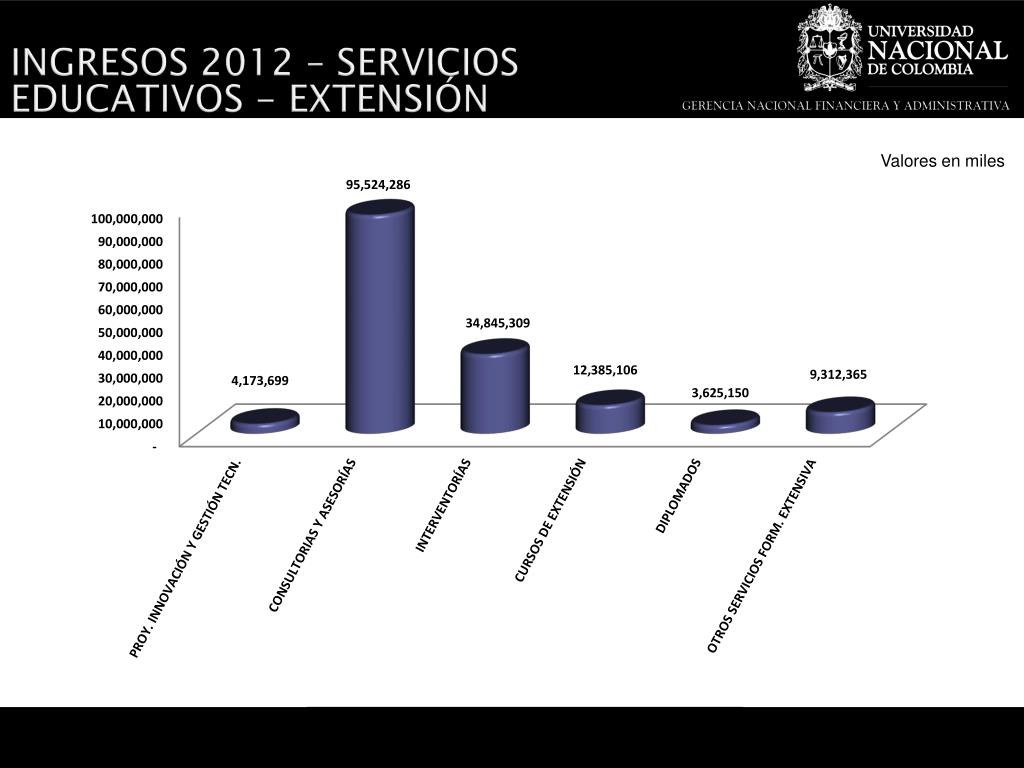 INGRESOS 2012 – SERVICIOS EDUCATIVOS - EXTENSIÓN Valores en miles