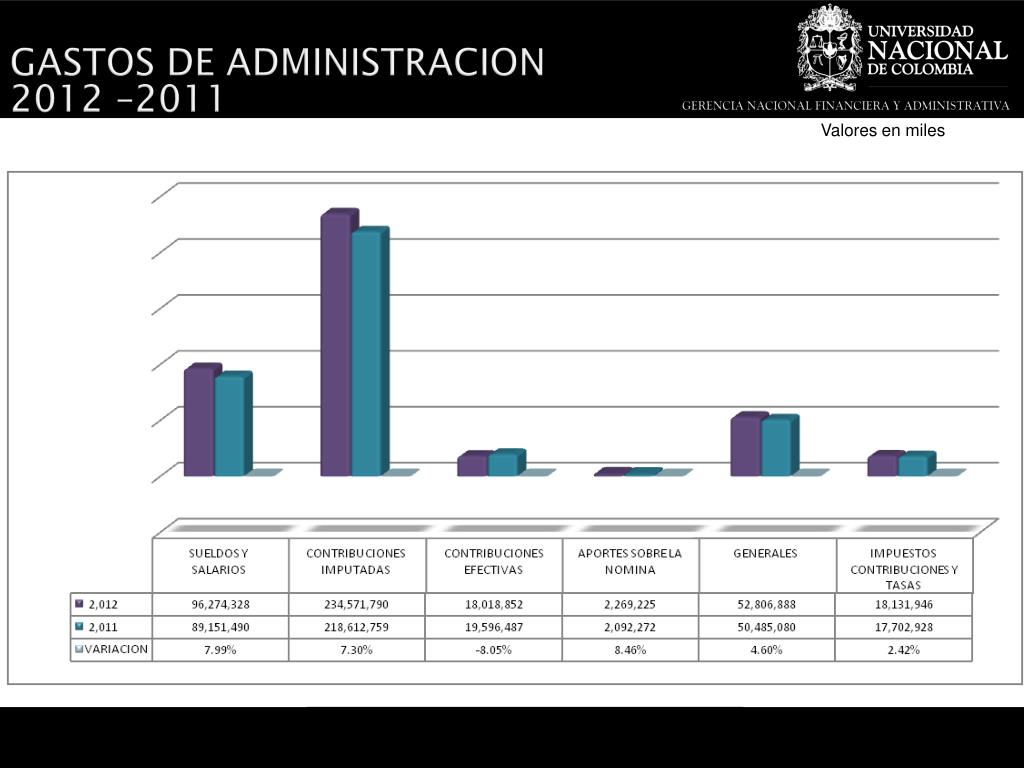 GASTOS DE ADMINISTRACION 2012 –2011 Valores en miles