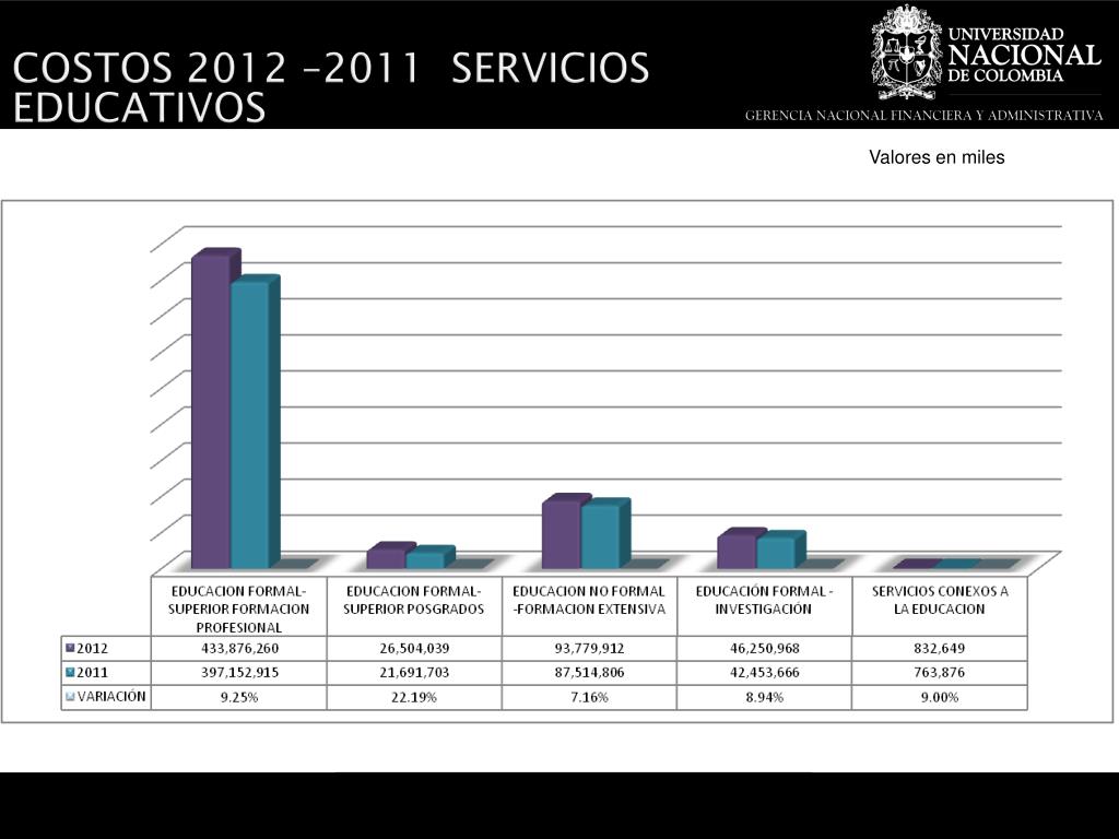 COSTOS 2012 –2011 SERVICIOS EDUCATIVOS Valores en miles