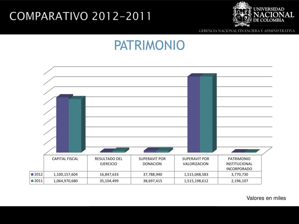 COMPARATIVO 2012-2011 PATRIMONIO Valores en miles