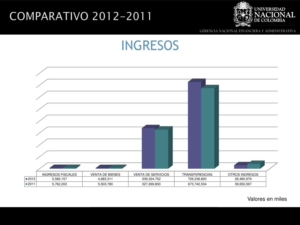 COMPARATIVO 2012-2011 INGRESOS Valores en miles