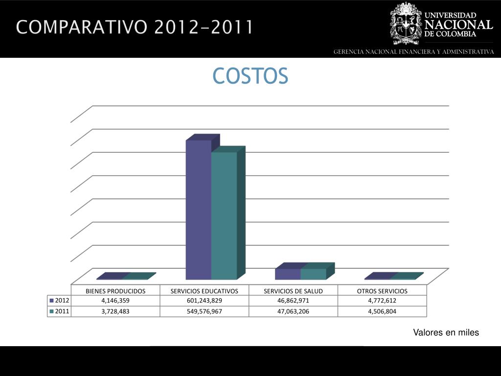 COMPARATIVO 2012-2011 COSTOS Valores en miles