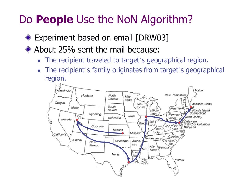 Do People Use the NoN Algorithm? • Experiment based on email [DRW03] • About 25% sent the mail because: • The recipient traveled to target’s geographical region. • The recipient’s family originates from target’s geographical region.