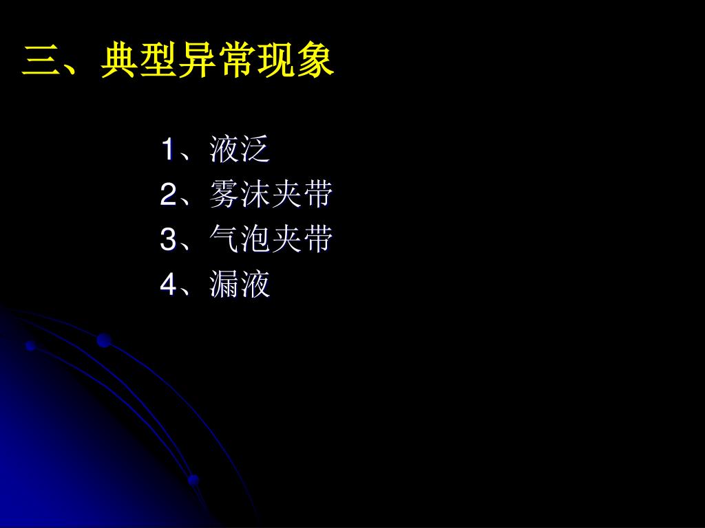 三、典型异常现象 1、液泛 2、雾沫夹带 3、气泡夹带 4、漏液