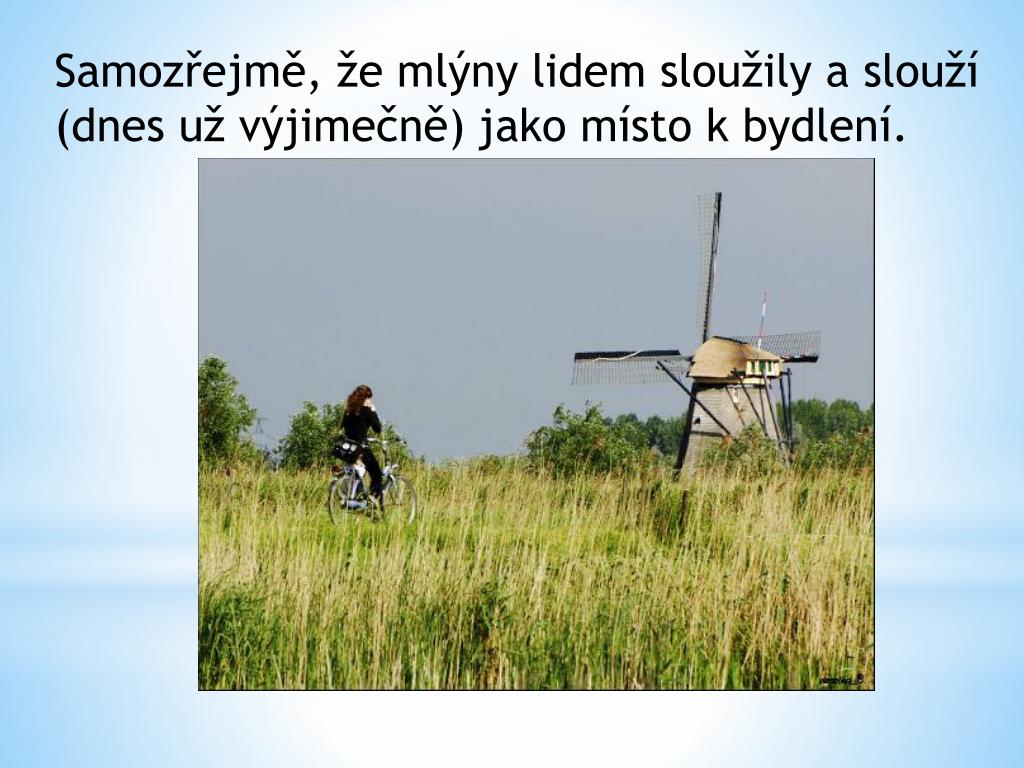 Samozřejmě, že mlýny lidem sloužily a slouží (dnes už výjimečně) jako místo k bydlení.