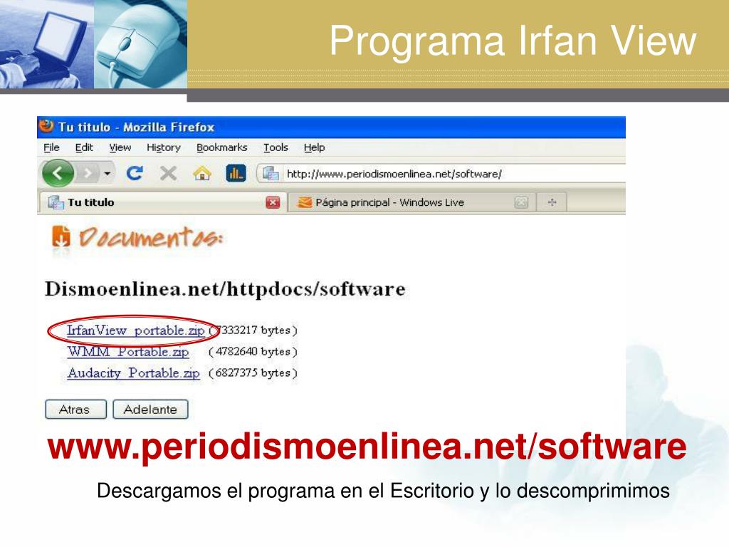 Programa Irfan View www.periodismoenlinea.net/software Descargamos el programa en el Escritorio y lo descomprimimos