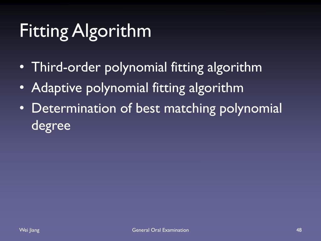 Fitting Algorithm Third-order polynomial fitting algorithm Adaptive polynomial fitting algorithm Determination of best matching polynomial degree Wei Jiang