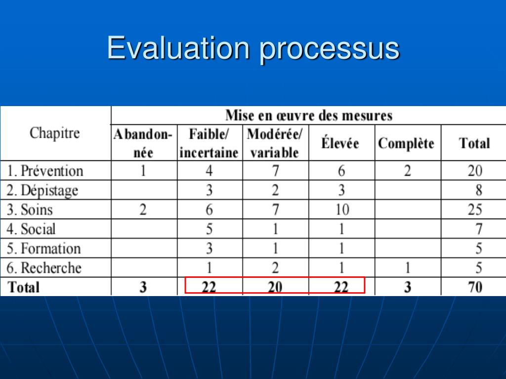 Problèmes rencontrés pour l’évaluation • Objectif premier difficilement évaluable à court terme. • Insuffisance des systèmes d’informations • Impact du seul plan cancer HCSP concentré sur les résultats Cour des comptes mise en œuvre