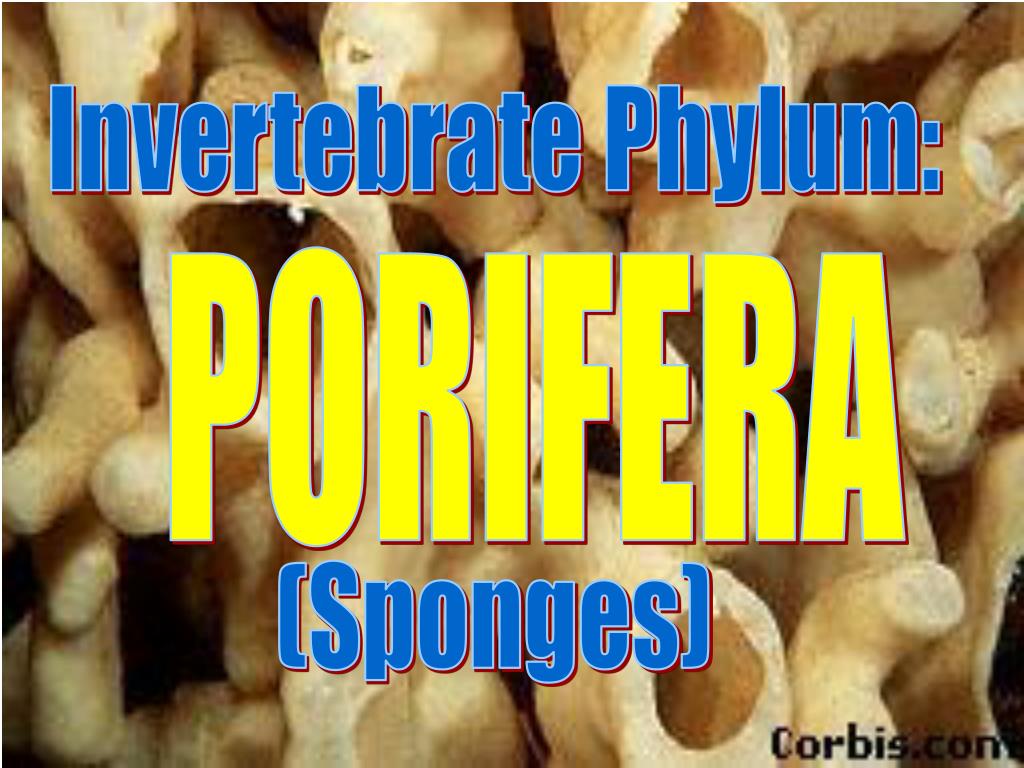 Invertebrate Phylum: (Sponges). PORIFERA. Vocabulary Porifera = "pore-bearing”; eat, excrete, & reproduce through pores ostia = pores for water to enter osculum = pores for water to exit. Vocabulary collar cells = cells to move water and catch food