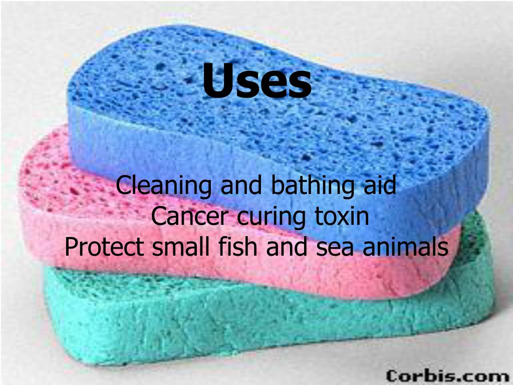 Uses Cleaning and bathing aid Cancer curing toxin Protect small fish and sea animals
