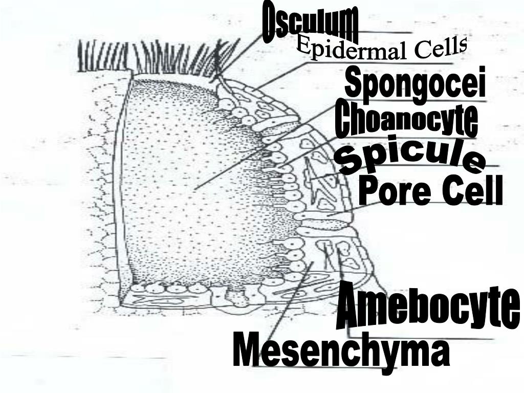 Osculum Epidermal Cells Spongocei Choanocyte Spicule Pore Cell Amebocyte Mesenchyma