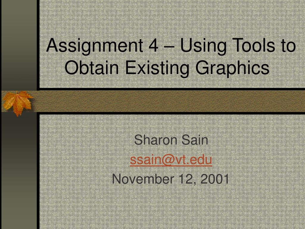 Assignment 4 – Using Tools to Obtain Existing Graphics Sharon Sain ssain@vt.edu November 12, 2001