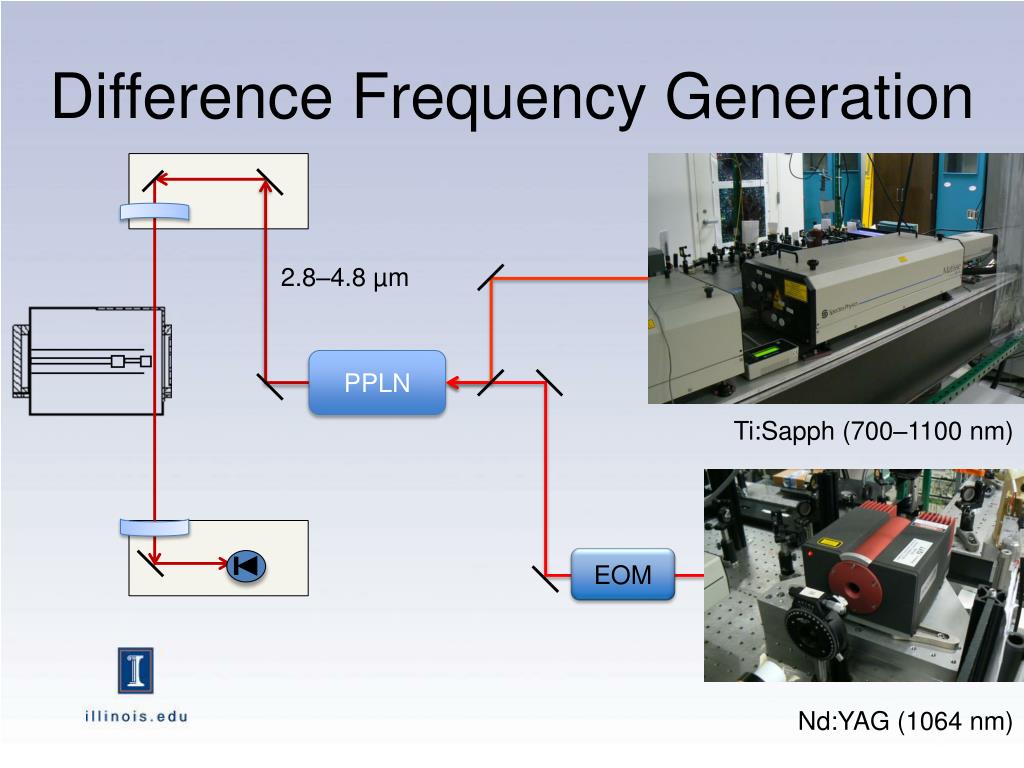 Difference Frequency Generation 2.8–4.8 µm PPLN Ti:Sapph (700–1100 nm) EOM Nd:YAG (1064 nm)