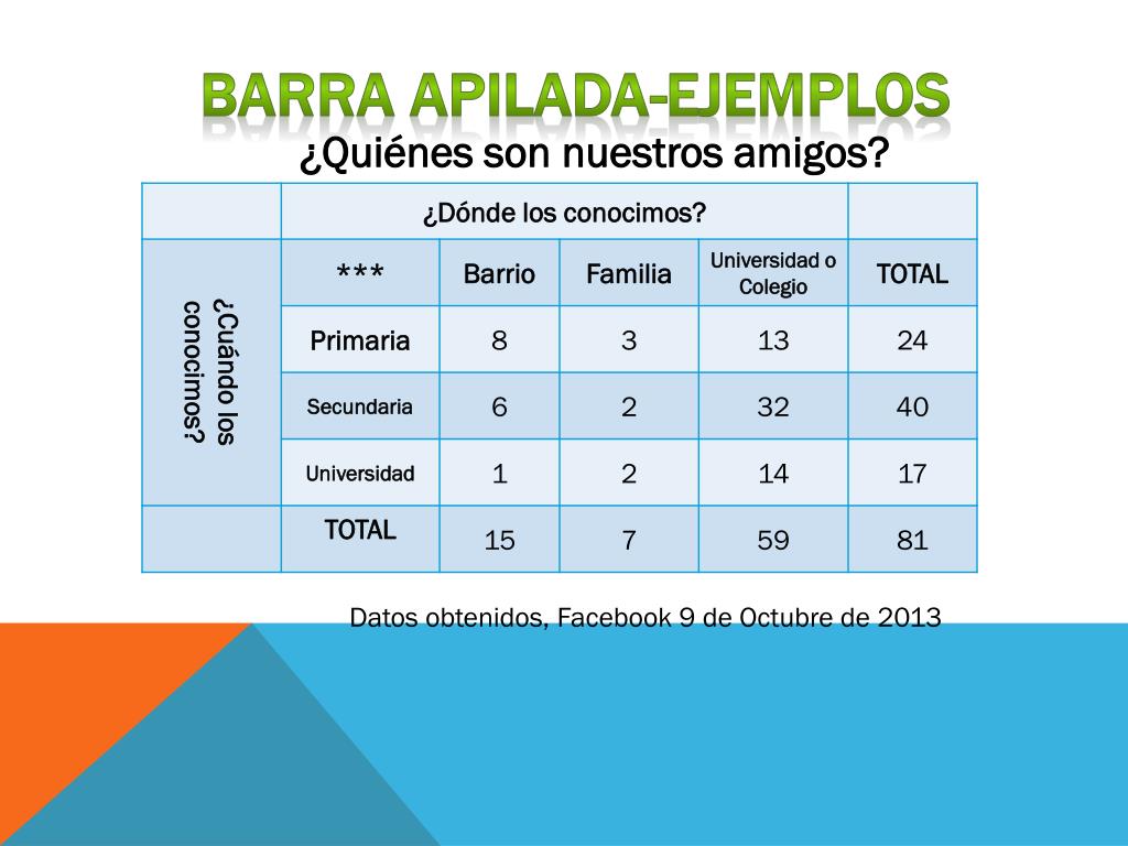 BARRA APILADA-ejemplos ¿Quiénes son nuestros amigos? Datos obtenidos, Facebook 9 de Octubre de 2013