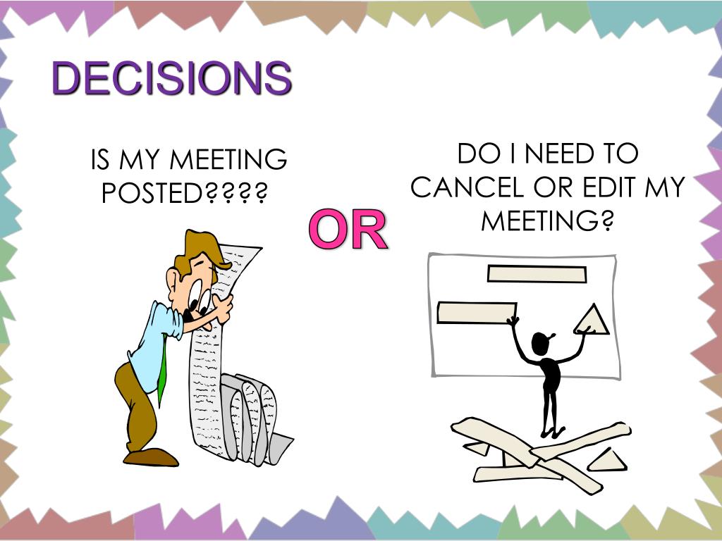 DECISIONS IS MY MEETING POSTED???? DO I NEED TO CANCEL OR EDIT MY MEETING? OR