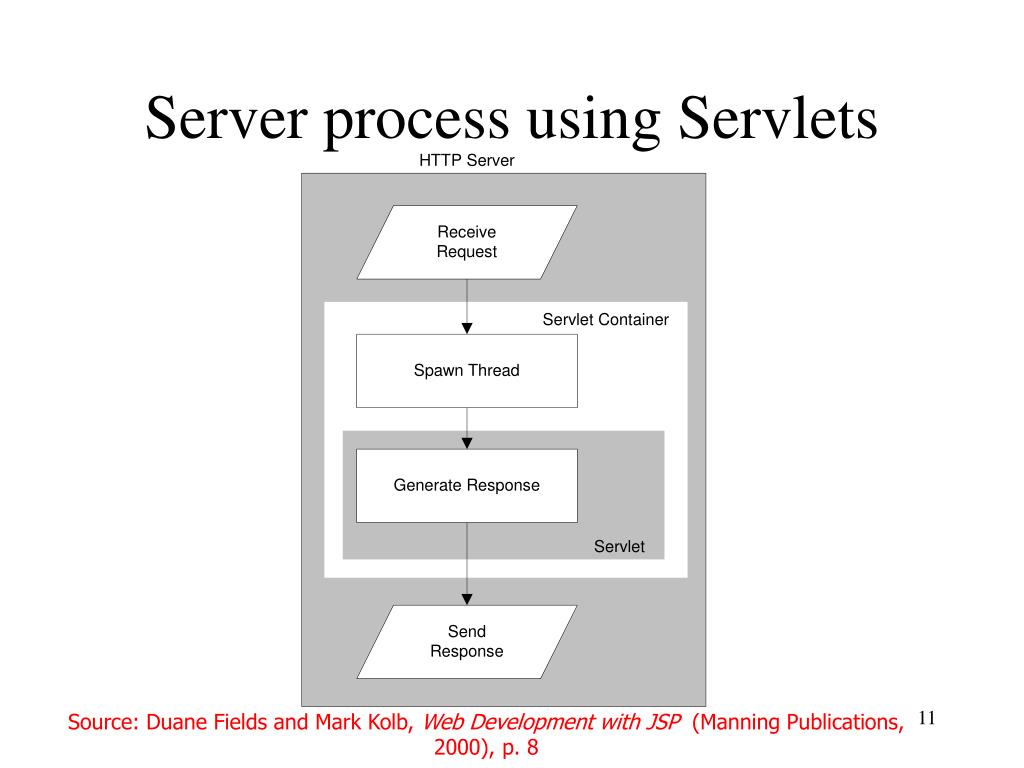 Server process using Servlets Source: Duane Fields and Mark Kolb, Web Development with JSP (Manning Publications, 2000), p. 8
