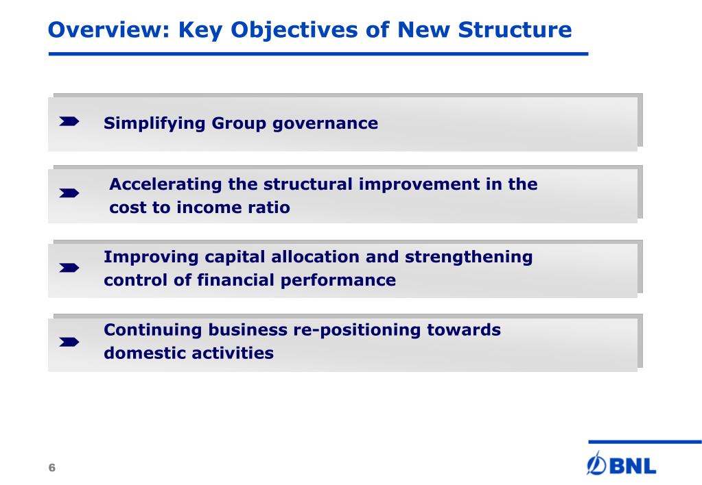 Overview: Key Objectives of New Structure Simplifying Group governance Accelerating the structural improvement in the cost to income ratio Improving capital allocation and strengthening control of financial performance Continuing business re-positioning towards domestic activities