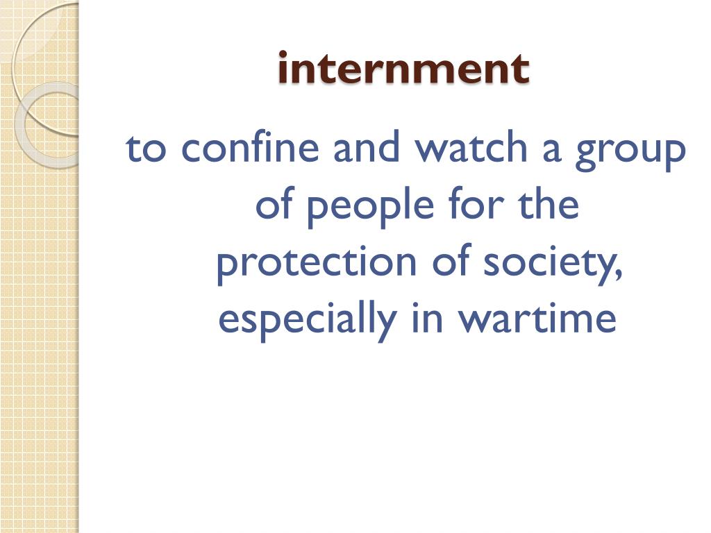 internment to confine and watch a group of people for the protection of society, especially in wartime