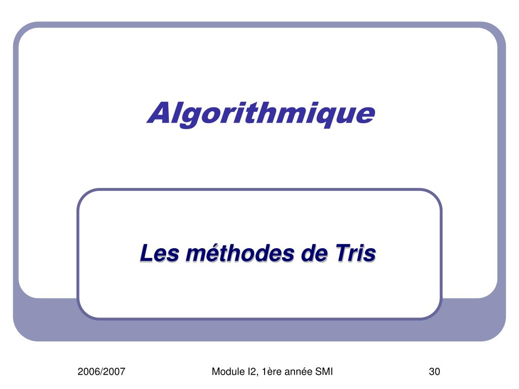 Algorithmique Les méthodes de Tris Module I2, 1ère année SMI