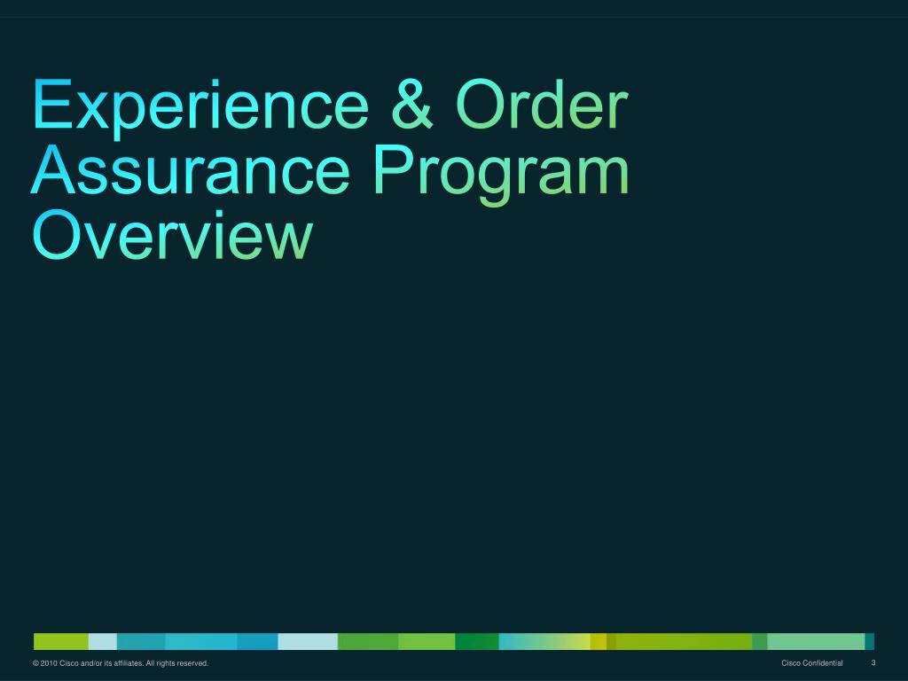 Cisco TelePresence Experience & Order Assurance Program. January 2012. Topics Covered. Experience & Order Assurance Program Overview Definition Quick Facts Why it exists How its evolved Experience & Order Assurance Process Overview Upcoming Launches.