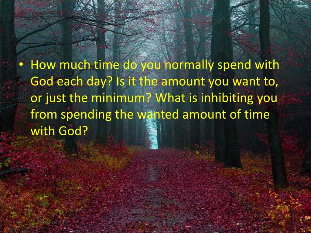 How much time do you normally spend with God each day? Is it the amount you want to, or just the minimum? What is inhibiting you from spending the wanted amount of time with God?