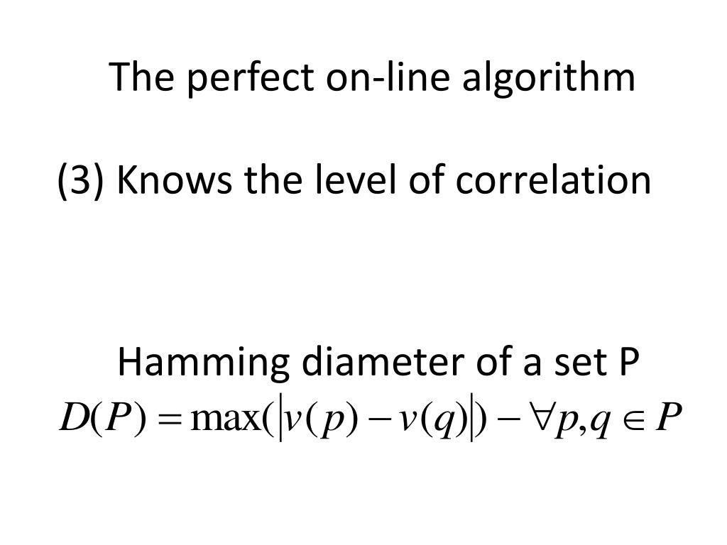 The perfect on-line algorithm (3) Knows the level of correlation Hamming diameter of a set P