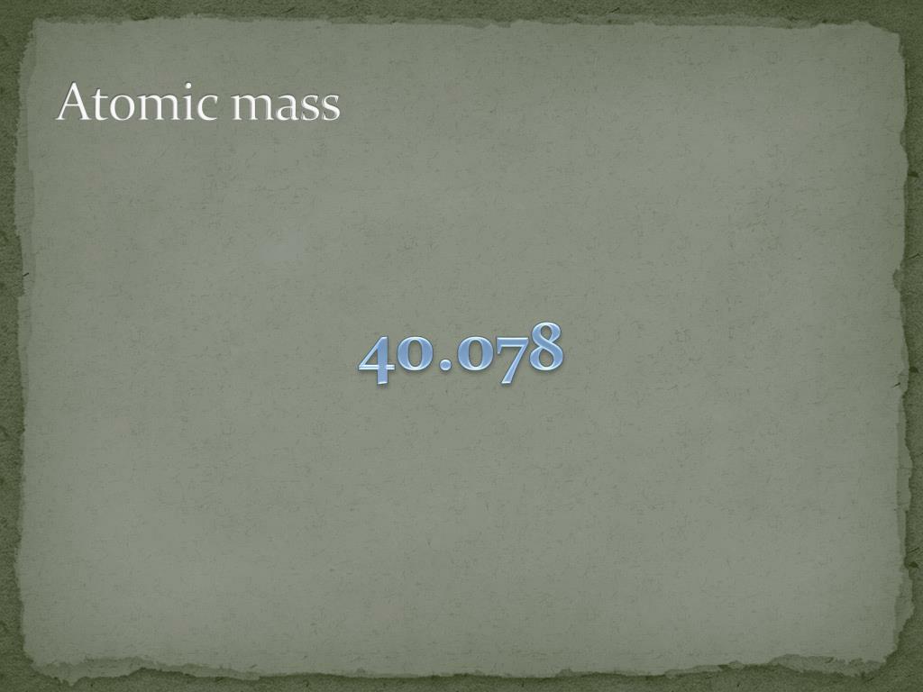 calcium. Eric Potter 5 th period Benton. Symbol of element. Ca. Atomic mass. 40.078. Atomic number. 20. Periodic Table Calcium is found. metals. History. Calcium was discovered by Sir Humphrey Davy, a British chemist, 1808 It got its name from Calcis, which is Latin for lime.