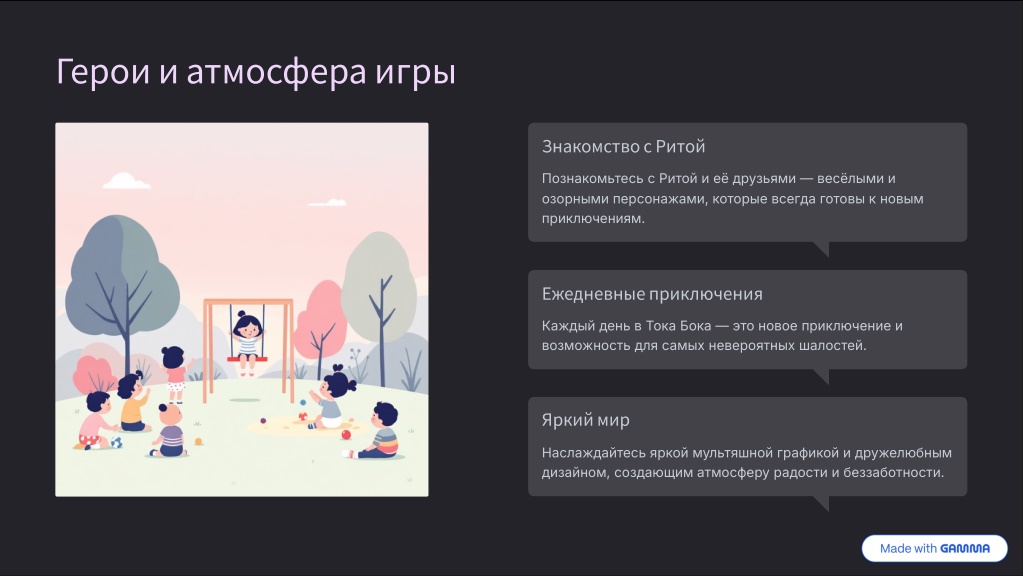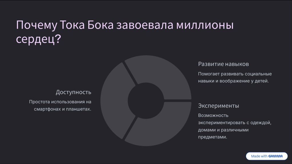 ПочемуТокаБоказавоеваламиллионыПочемуТокаБоказавоеваламиллионы сердец? Развитиенавыков Помогает развивать социальные навыки и воображение у детей. Доступность Простота использования на смартфонах и планшетах. Эксперименты Возможность экспериментировать с одеждой, домами и различными предметами.