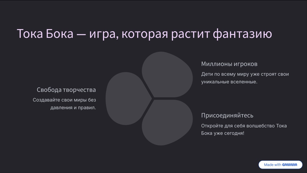 ТокаБока — игра, котораяраститфантазию Миллионыигроков Дети по всему миру уже строят свои уникальные вселенные. Свободатворчества Создавайте свои миры без давления и правил. Присоединяйтесь Откройте для себя волшебство Тока Бока уже сегодня!
