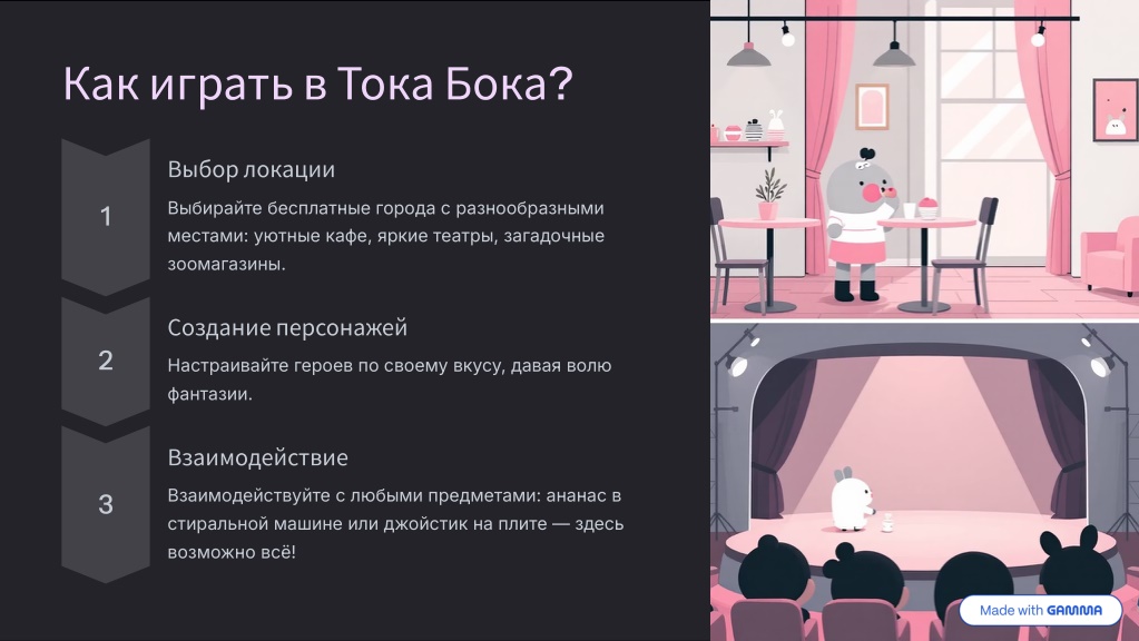 Каки7рать6ТокаБока? Вы5>@;>:4ц88 Вы58райте 5есплатные 7орода с ра7ноо5ра7ным8 местам8: уNтные кафе, Oрк8е театры, 7а7адощные 7оома7а78ны. 1 С>744=85?5@A>=4659 2 Настра86айте 7ерое6 по с6оему 6кусу, да6аO 6олN фанта788. В748<>459AB685 В7а8модейст6уйте с лN5ым8 предметам8: ананас 6 ст8ралюной маь8не 8л8 джойст8к на пл8те — 7десю 6о7можно 6сё! 3