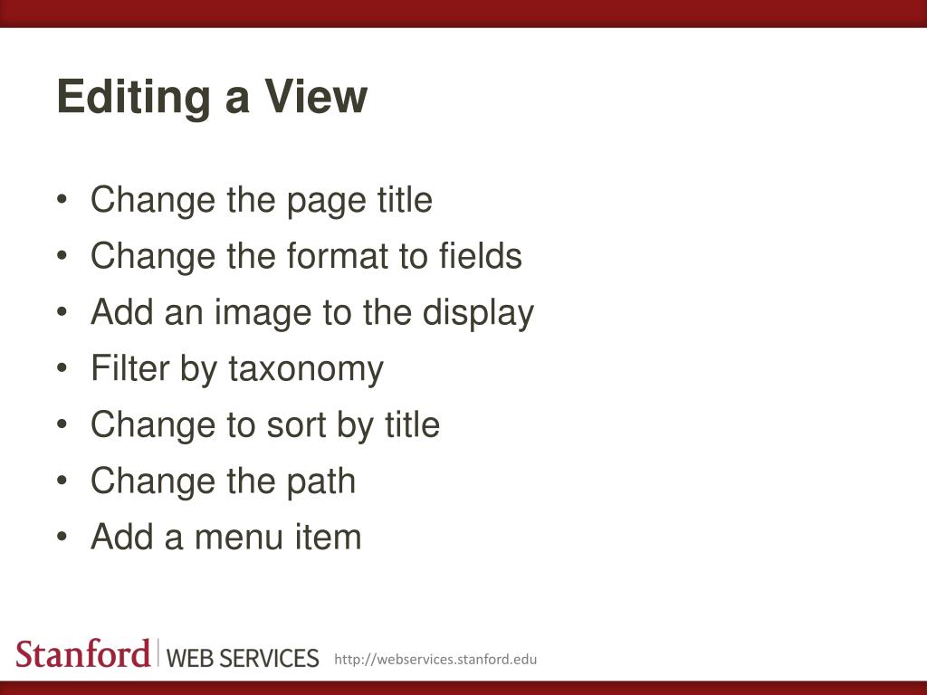 Introduction to Views Stanford Drupal Camp April 6, 2013