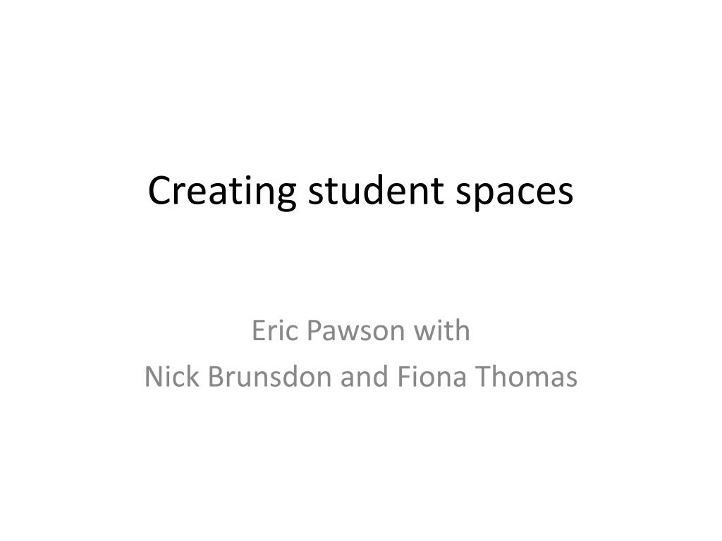 Creating student spaces Eric Pawson with Nick Brunsdon and Fiona Thomas