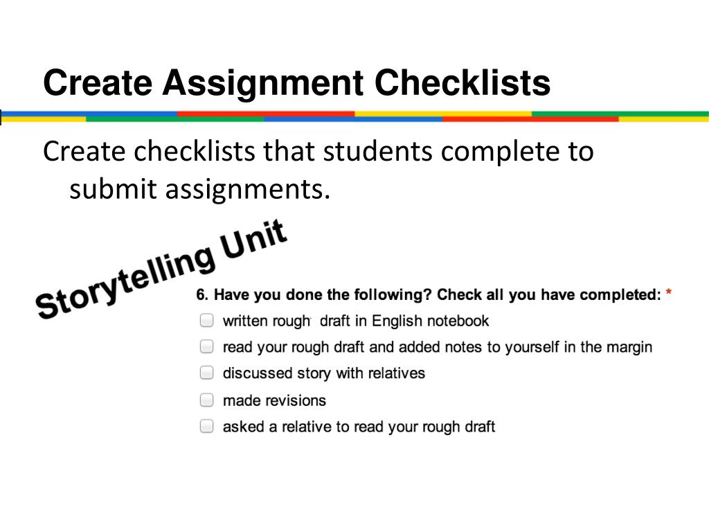 Create Assignment Checklists Create checklists that students complete to submit assignments.