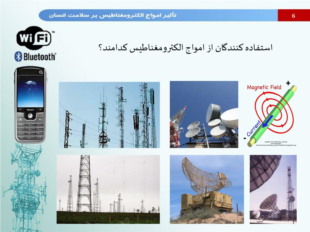 تأثیر امواج الکترومغناطیس بر سلامت انسان موبایل، بلوتوث، خطوط انتقال و اجاق مایکروویو. دارا جوکار. قسمت اول. 4. امواج الکترومغناطیس چیست؟. اگر در ناحیهای از فضا میدان الكتریكی تغییر كند آن گاه میدان مغناطیسی در فضا به وجود می آید. . 5. 6. استفاده کنندگان از امواج الکترومغناطیس کدامند؟.