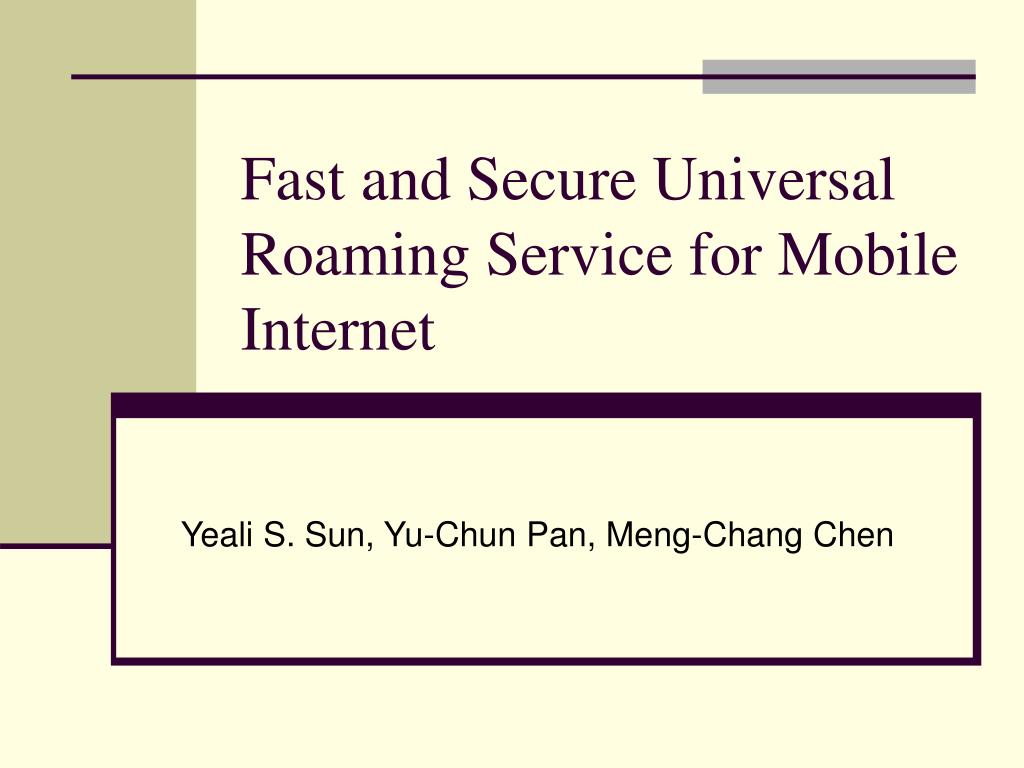 Fast and Secure Universal Roaming Service for Mobile Internet Yeali S. Sun, Yu-Chun Pan, Meng-Chang Chen