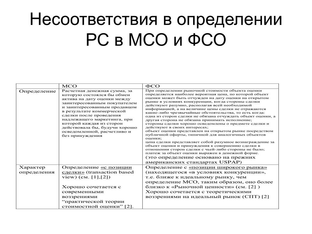 Несоответствия в определении РС в МСО и ФСО
